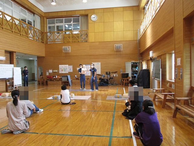 山梨県立富士見支援学校旭分校 > 教育活動 > R4年度 授業の様子⑧(特別活動・救急法講習会) 2022年6月8日カテゴリー: 教育活動 R4年度 授業の様子⑧(特別活動・救急法講習会) 6月7日(火)の5,6校時に救急法講習会を行いました。 実技演習形式で心肺蘇生法とAEDの使い方について学習しましたよ。 韮崎消防署の消防士さんが丁寧に分かりやすく説明をしてくださり、生徒も先生も一生懸命に取り組んでいました。 生徒や先生から質問もたくさん出て、消防士さんが1つ1つ疑問を解消してくれ、とても実りある講習会になりました(*^-^*)