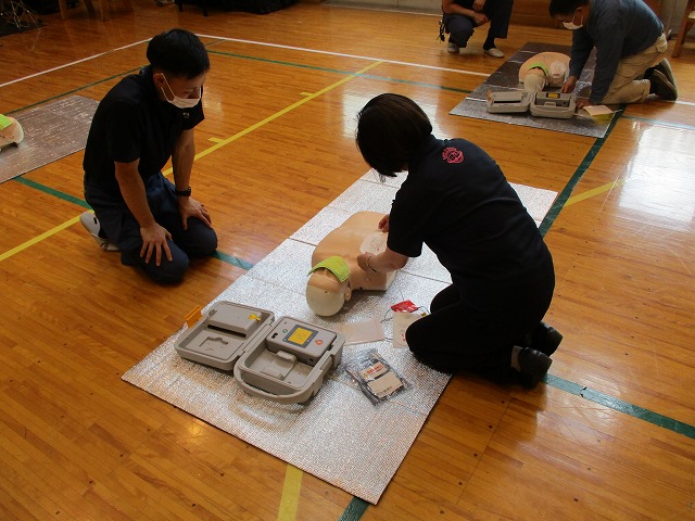 実技演習形式で心肺蘇生法とAEDの使い方について学習しましたよ。