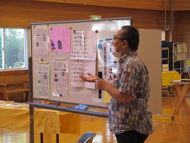 最初のはじめの会では、春光堂書店さんの紹介と、トークライブをしました。生徒からも活発に質問が出て、春光堂書店さんがその質問1つ1つにとても丁寧に答えてくださりました。
