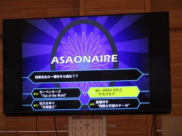 クイズでは新任の教職員の方々にまつわる問題が出題され、日常の会話にヒントがあったり、